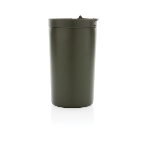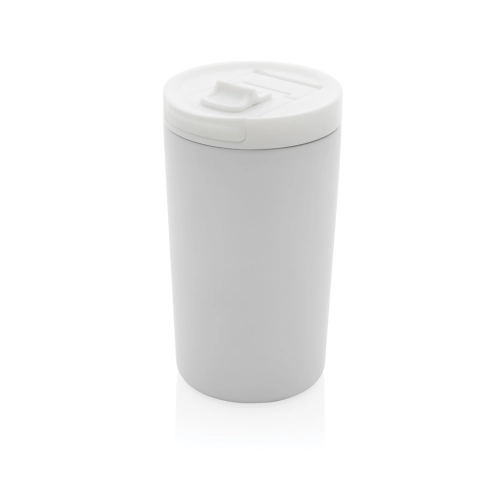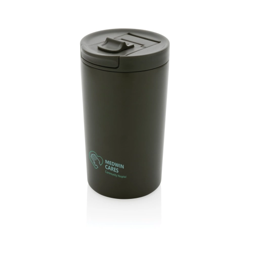 This double wall vacuum leakproof lock mug is the perfect size for your beverage. It's leakproof sealed flip lid is designed for easy open/close and on-the-go use. Vacuum insulation keeps beverages hot for up to 5 hours and cold for up to 15 hours. Made with RCS (Recycled Claim Standard) certified recycled materials. RCS certification ensures a completely certified supply chain of the recycled materials. Total recycled content: 80% based on total item weight. Capacity 300ml. BPA free and hand wash only.
