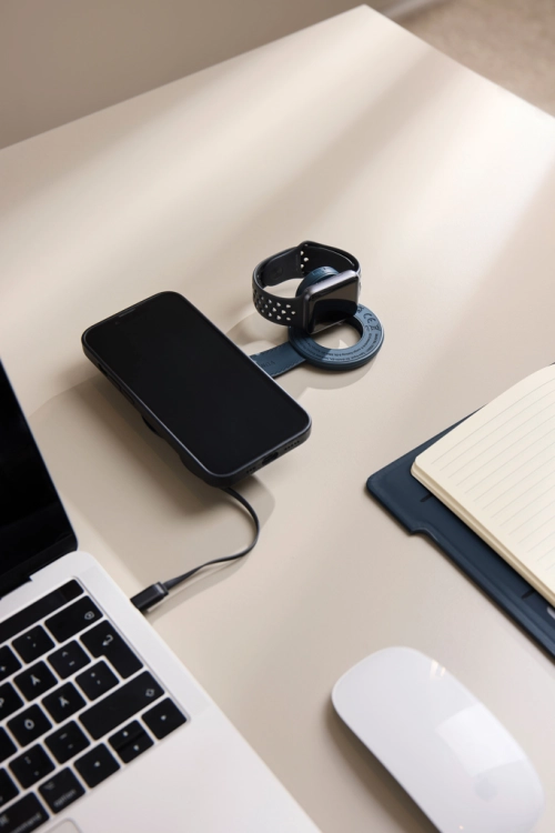Baltimore Wireless 2-in-1 Travel Charger is designed to deliver fast, effortless power for your everyday essentials. Lightweight and functional, it eliminates cable clutter and replaces multiple chargers with one elegant solution. Crafted from RCS-certified recycled ABS with the classic Baltimore matte PU coating, it offers a sleek, minimalistic look. Compact and travel-ready, it wirelessly charges both your phone and your watch at the same time, making it the perfect companion for life on the move. With Qi compatibility, precise magnetic alignment and fast wireless charging, your devices stay perfectly positioned and power up quickly. Simply connect it to a USB-C power source for a seamless, organised charging setup. Compatible with Qi-enabled devices, including phones and Apple and Samsung watches. Type-C input: 5V/3A, 9V/2A. Wireless output: Phone 5W/7.5W/10W/15W (MAX), Watch 2.5W (MAX). Total recycled content: 36% based on total item weight. Certified by Control Union, CU1162221.